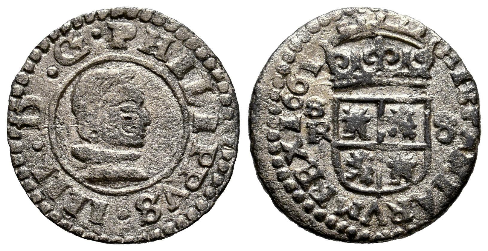 Felipe IV (1621-1665). 8 maravedís. 1661. Sevilla. R. (Cal-405). (Jarabo-Sanahuja-M633 var. tipo). Ve. 1,92 g. MBC-. Est...35,00.