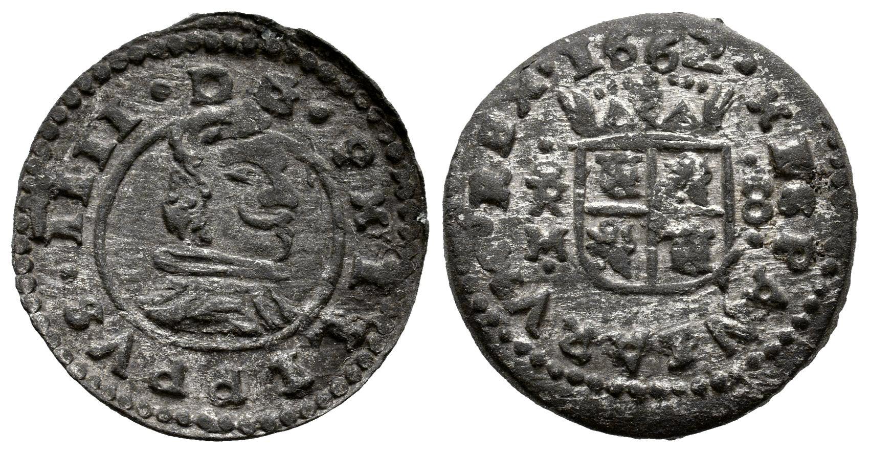 Felipe IV (1621-1665). 8 maravedís. 1662. Trujillo. M. (Cal-423). (Jarabo-Sanahuja-M734). Ve. 2,18 g. Restos de plateado original. EBC-. Est...60,00.