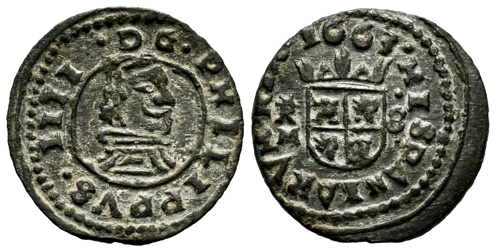 Felipe IV (1621-1665). 8 maravedís. 1663. Trujillo. M. (Cal-424). (Jarabo-Sanahuja-M736). Ae. 1,89 g. Ceca y ensayador a izquierda. MBC+. Est...30,00.