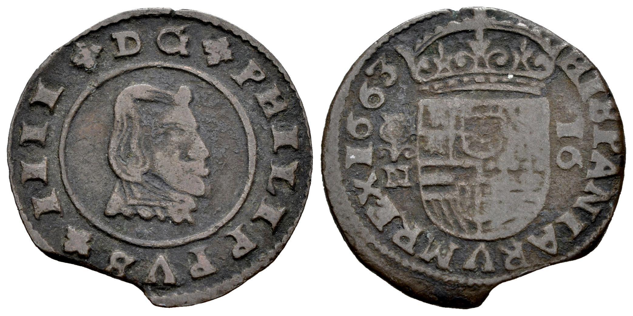 Felipe IV (1621-1665). 16 maravedís. 1663. Granada. N. (Cal-463). Ag. 3,16 g. Defecto de cospel. BC+. Est...20,00.