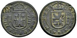 Felipe IV (1621-1665). 12 maravedís. 1641-1642. Madrid. (Cal-514). (Jarabo-Sanahuja-H23). Ae. 6,09 g. Resellada sobre un 8 maravedís de Segovia de 1612. MBC+. Est...25,00.