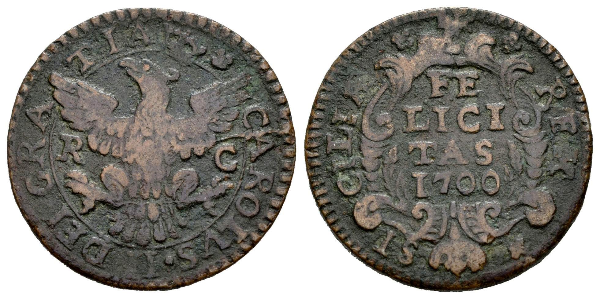 Carlos II (1665-1700). 1 grano. 1700. Palermo. R-C. (Vti-43). (MIR-497/3). Ae. 5,14 g. MBC-. Est...35,00.