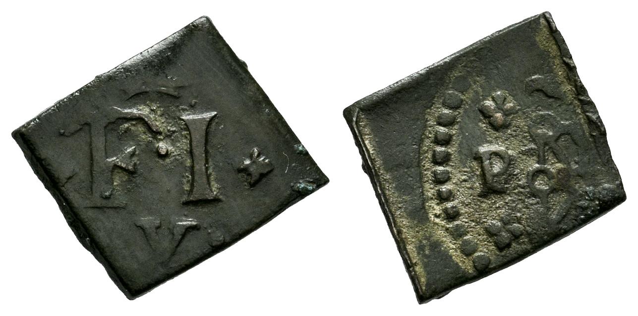 Felipe V (1700-1746). Cornado. Pamplona. (Cal-23). (Ros-4.7.14). Ae. 1,12 g. Cospel cuadrado. Rara. MBC. Est...30,00.