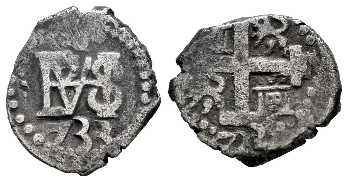 Felipe V (1700-1746). 1/2 real. 1732. Lima. (Cal-162). Ag. 1,98 g. Tres puntos encima del monograma. Doble fecha. Tono. Escasa. MBC+. Est...90,00.