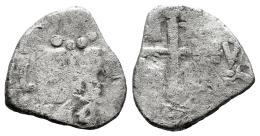 Felipe V (1700-1746). 1/2 real. 1744. Lima. V. (Cal-176). Ag. 1,58 g. Puntos encima del monograma. Doble fecha, parcialmente visible en reverso. Marca de ceca y ensayador visibles. Oxidaciones. BC-. Est...50,00.