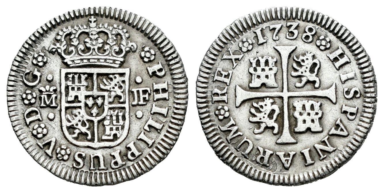 Felipe V (1700-1746). 1/2 real. 1738. Madrid. JF. (Cal-185). Ag. 1,39 g. Limpiada. MBC. Est...35,00.