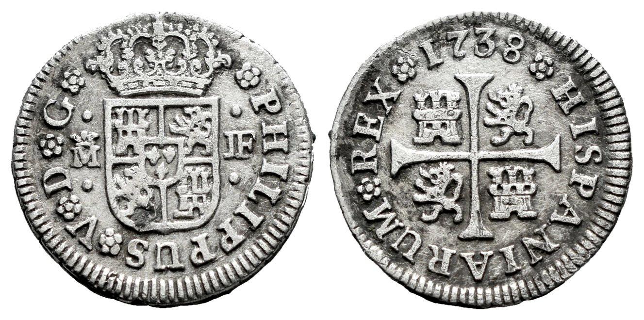 Felipe V (1700-1746). 1/2 real. 1738. Madrid. JF. (Cal-185). Ag. 1,41 g. Limpiada. MBC. Est...25,00.