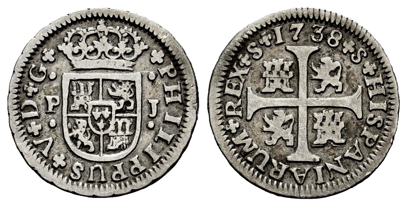 Felipe V (1700-1746). 1/2 real. 1738. Sevilla. PJ. (Cal-345). Ag. 1,35 g. MBC. Est...40,00.