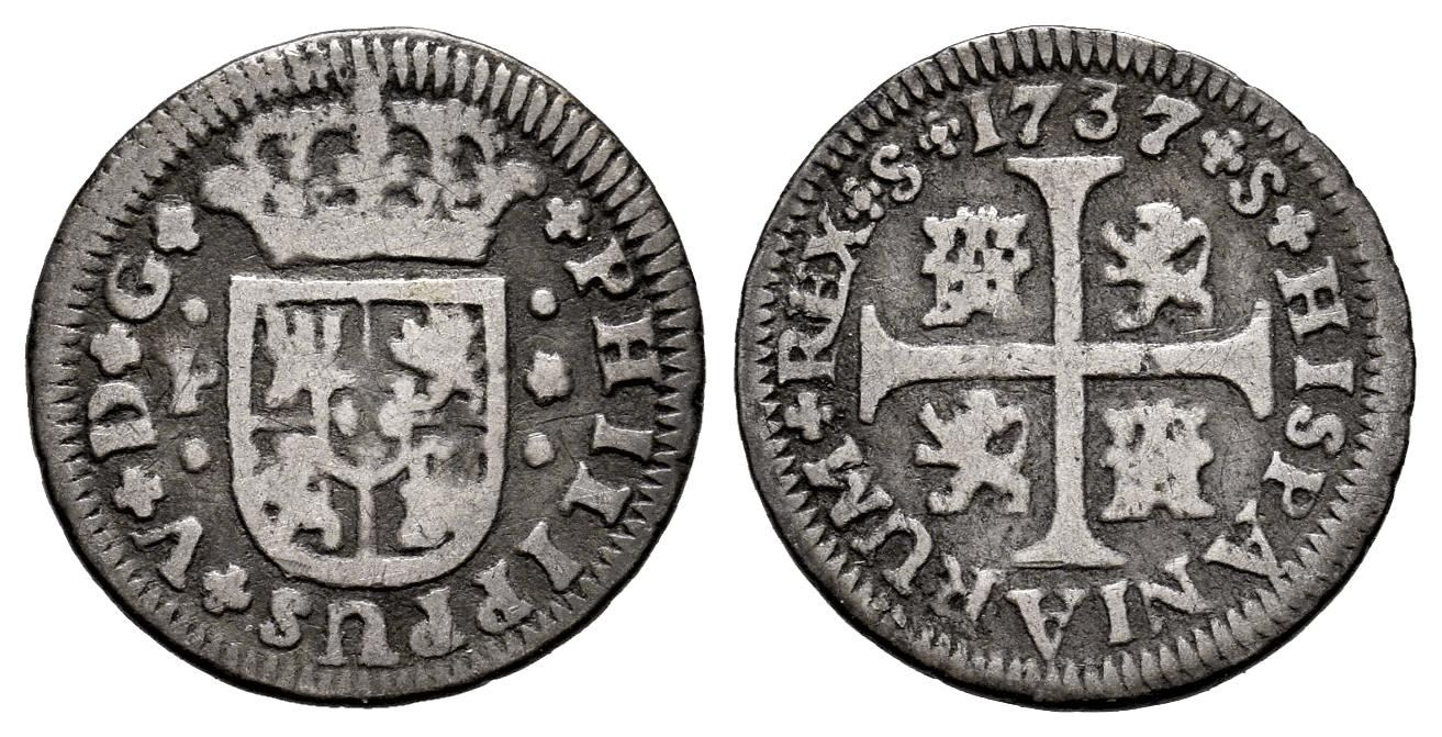 Felipe V (1700-1746). 1/2 real. 1737. Sevilla. P. (Cal-344). Ag. 1,32 g. BC+/MBC-. Est...20,00.