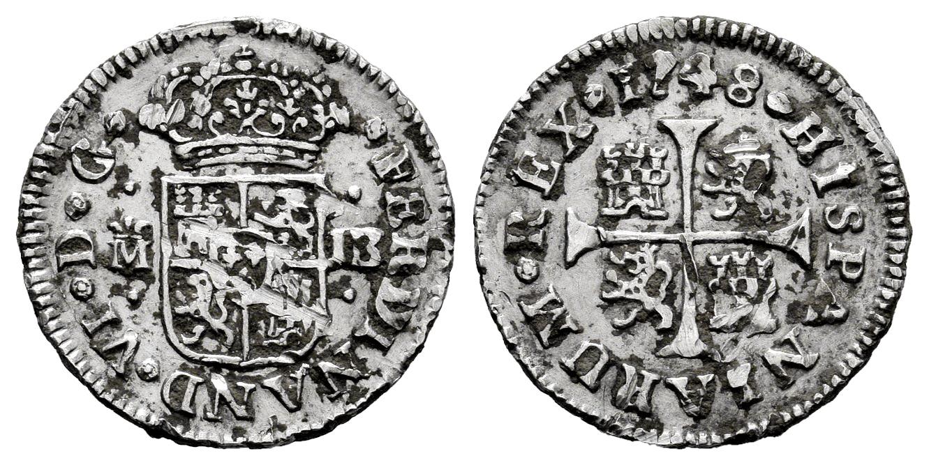 Fernando VI (1746-1759). 1/2 real. 1748. Madrid. JB. (Cal-67). Ag. 1,54 g. Fuertes arañazos. MBC. Est...25,00.