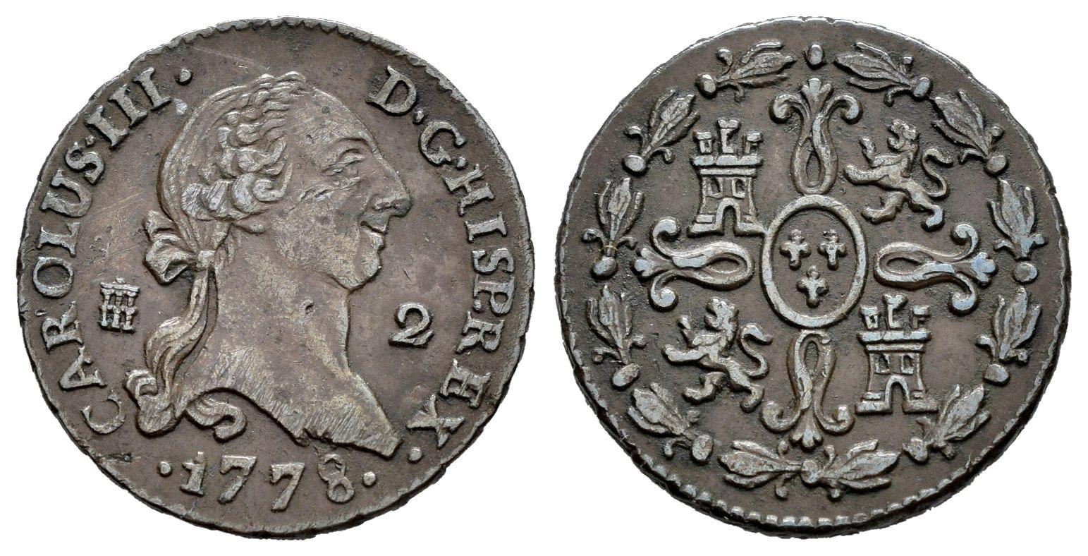 Carlos III (1759-1788). 2 maravedís. 1778. Segovia. (Cal-42). Ae. 2,52 g. MBC. Est...30,00.