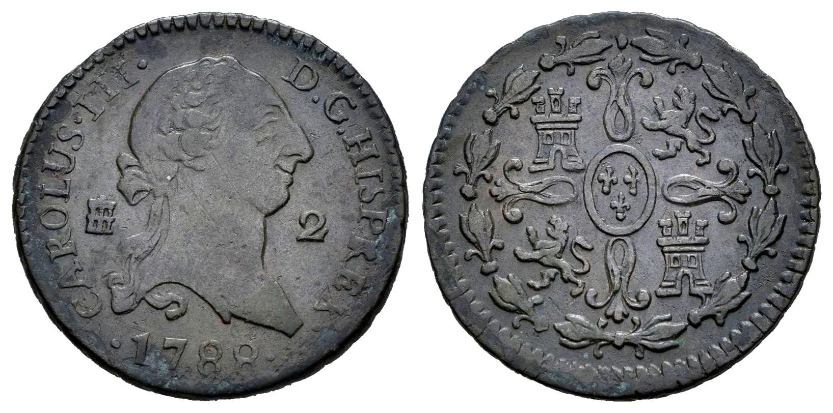 Carlos III (1759-1788). 2 maravedís. 1788. Segovia. (Cal-49). Ae. 2,53 g. MBC-/MBC. Est...25,00.