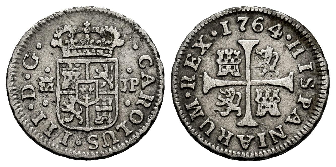 Carlos III (1759-1788). 1/2 real. 1764. Madrid. JP. (Cal-151). Ag. 1,43 g. MBC-. Est...40,00.