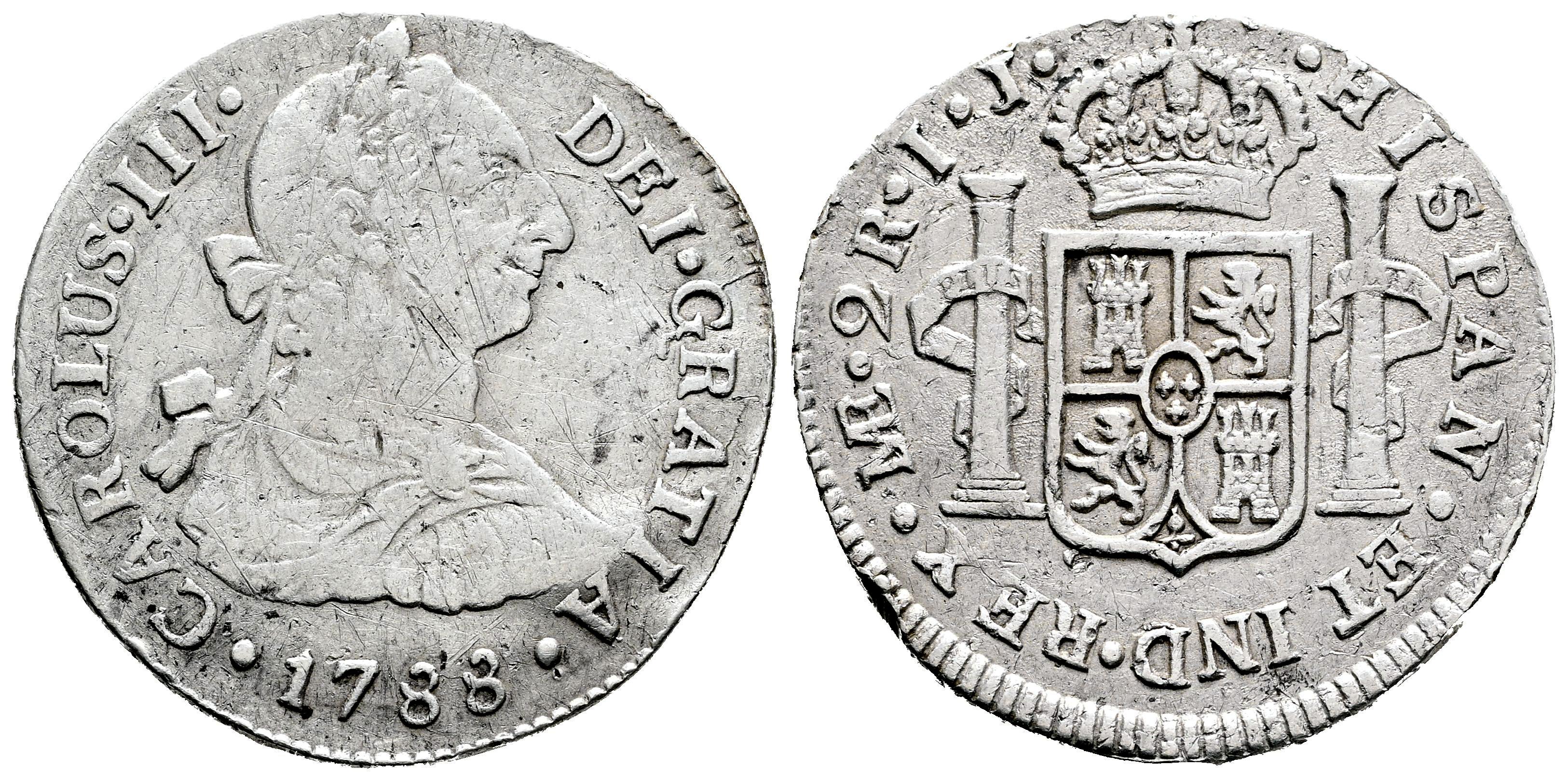 Carlos III (1759-1788). 2 reales. 1788. Lima. IJ. (Cal-604). Ag. 6,38 g. Leves arañazos y golpes. Algo alabeada. MBC-. Est...50,00.