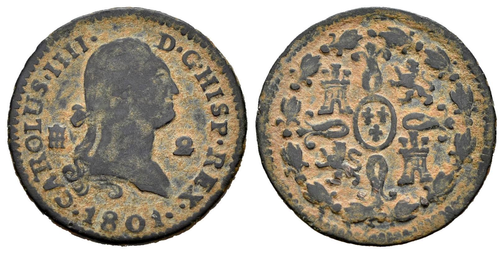 Carlos IV (1788-1808). 2 maravedís. 1801. Segovia. (Cal-35). Ae. 2,22 g. MBC-. Est...15,00.