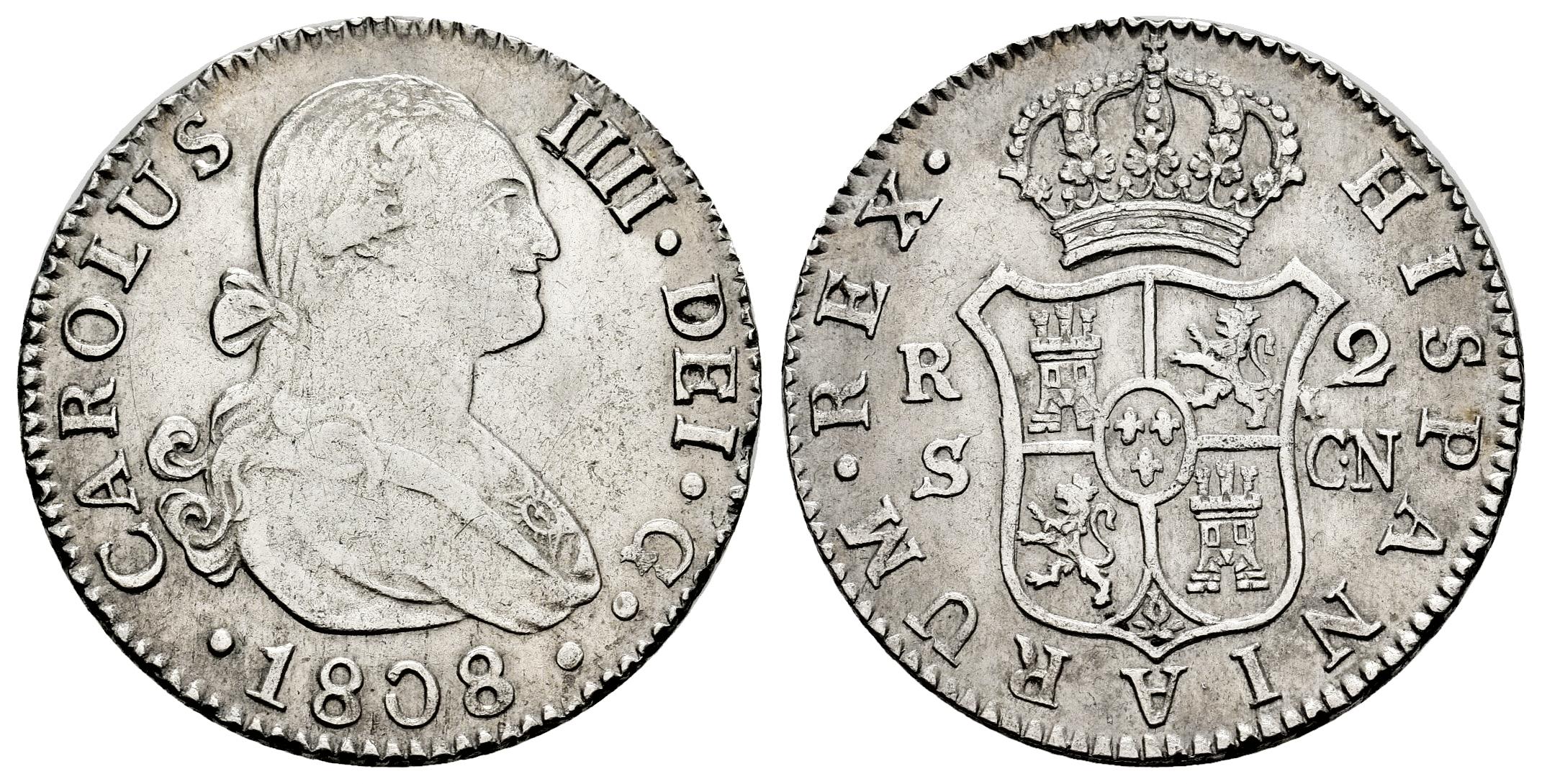 Carlos IV (1788-1808). 2 reales. 1808. Sevilla. CN. (Cal-728). Ag. 5,85 g. Ligeramente limpiada. MBC+. Est...70,00.