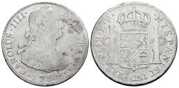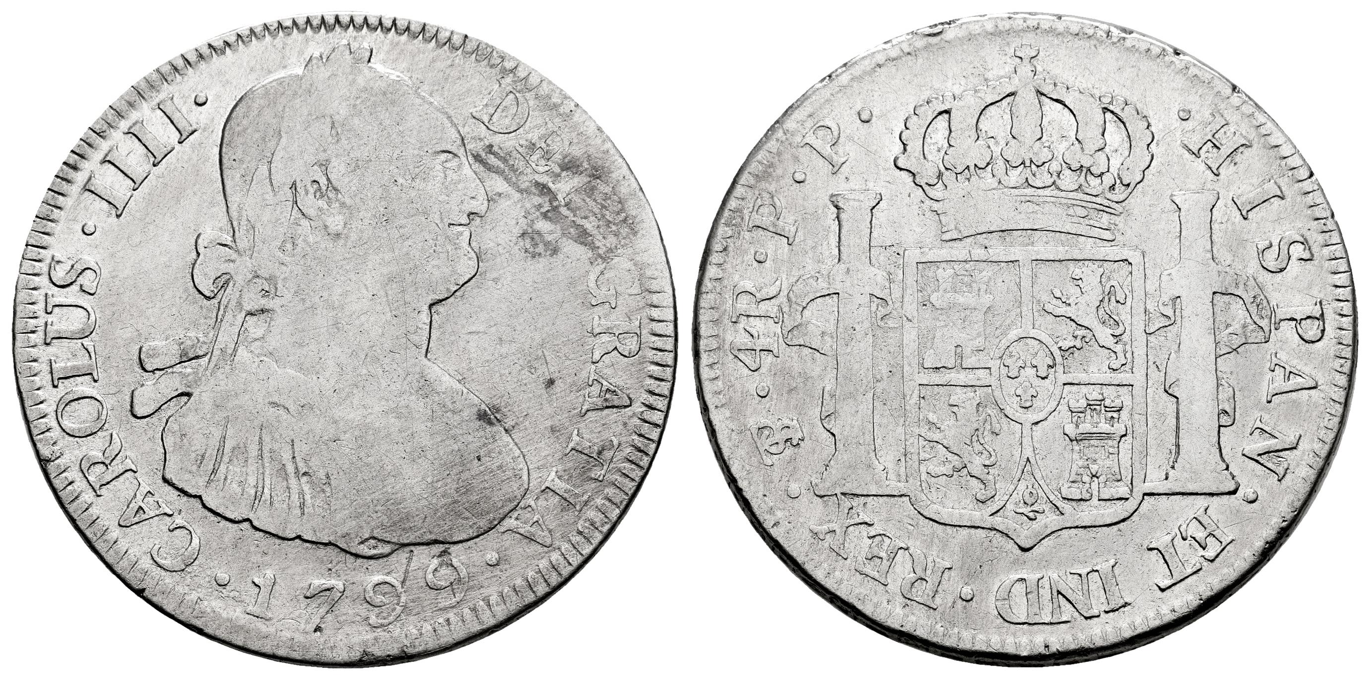 Carlos IV (1788-1808). 4 reales. 1799. Potosí. PP. (Cal-834). Ag. 1320,00 g. Fuerte limpieza. BC/BC+. Est...45,00.