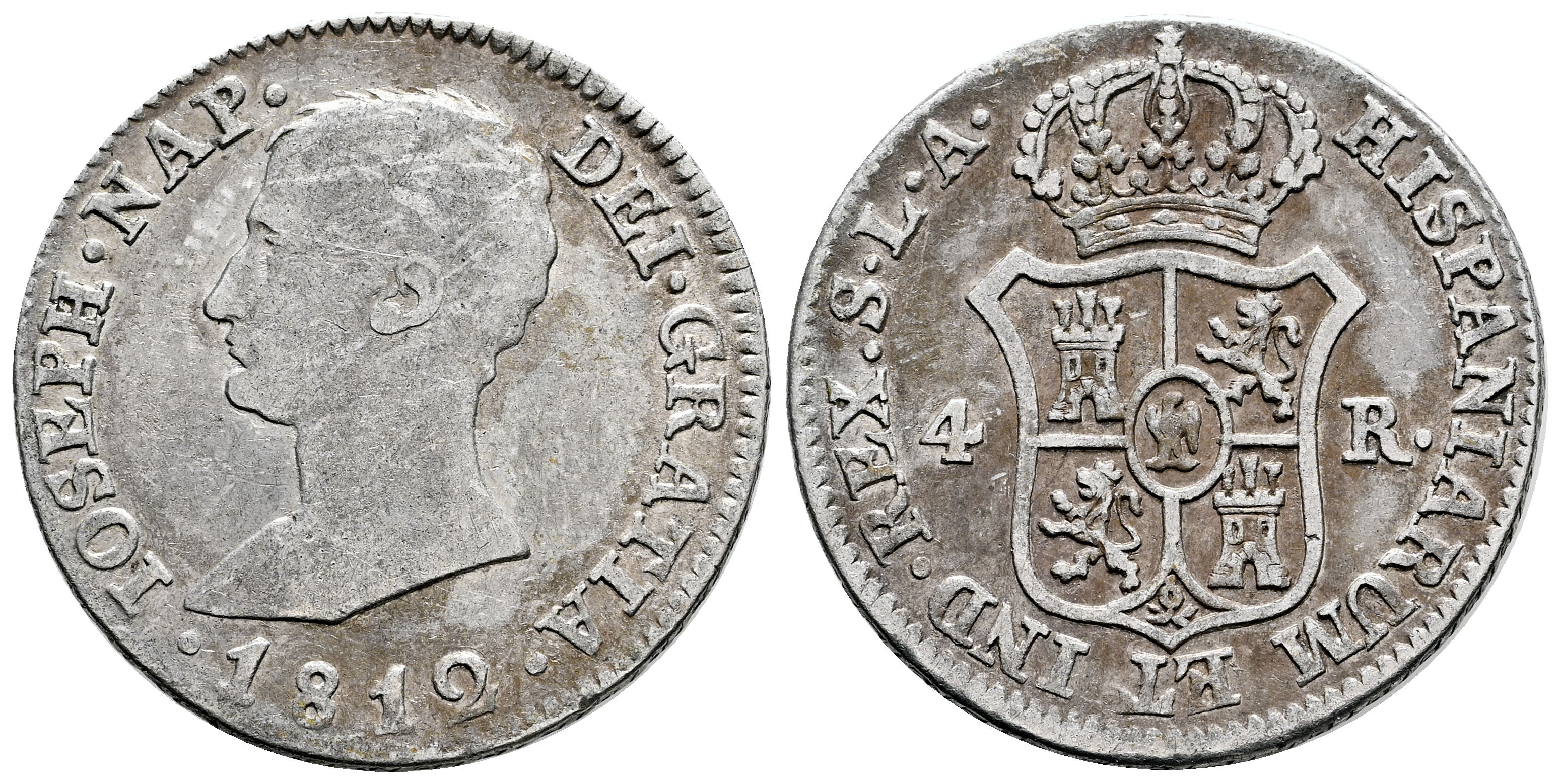 José Napoleón (1808-1814). 2 reales. 1812. Sevilla. LA. (Cal-25). Ag. 5,86 g. MBC-. Est...50,00.
