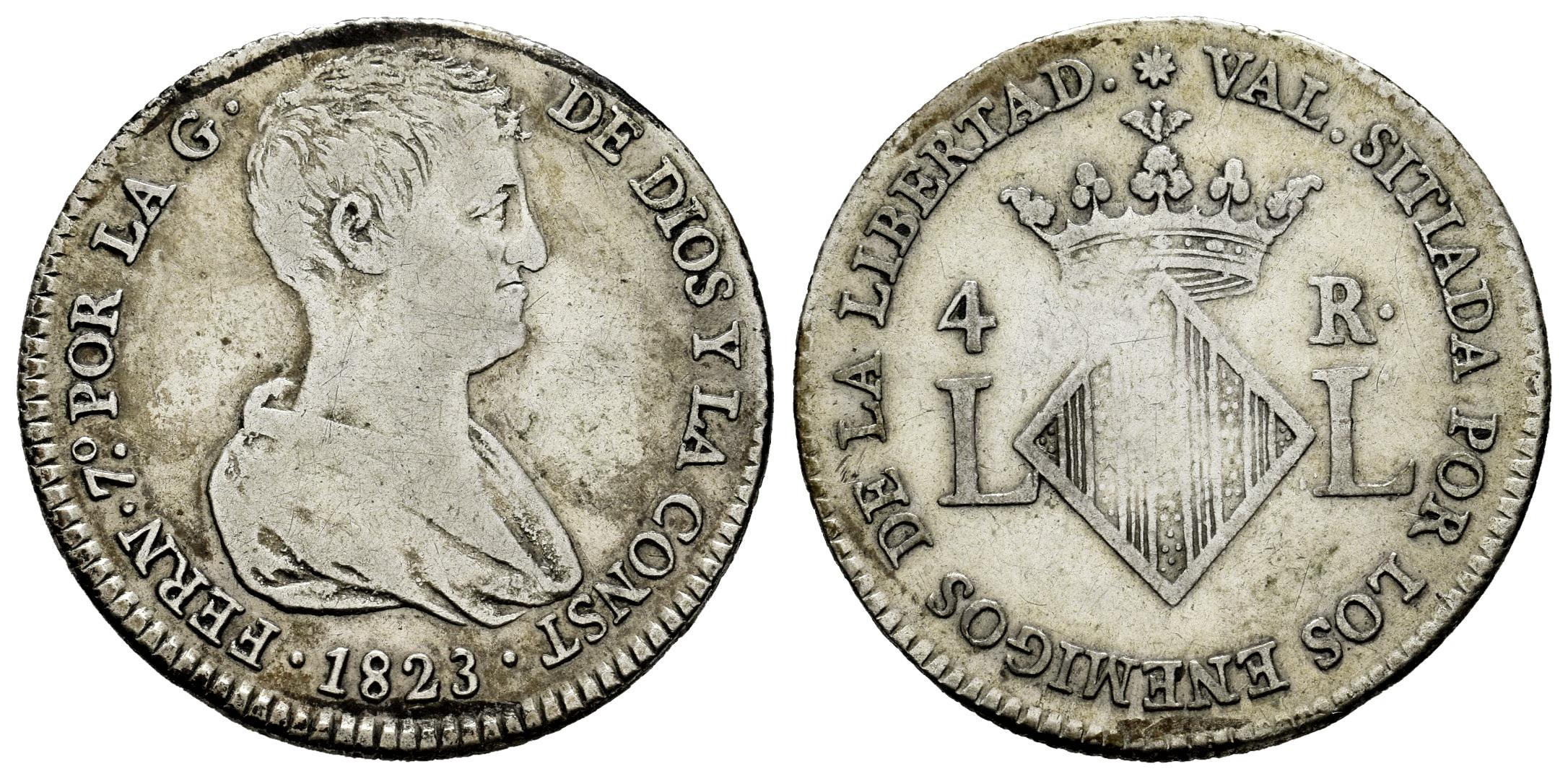 Fernando VII (1808-1833). 4 reales. 1823. Valencia. (Cal-994). Ag. 6,04 g.  Escasa. MBC-. Est...80,00.