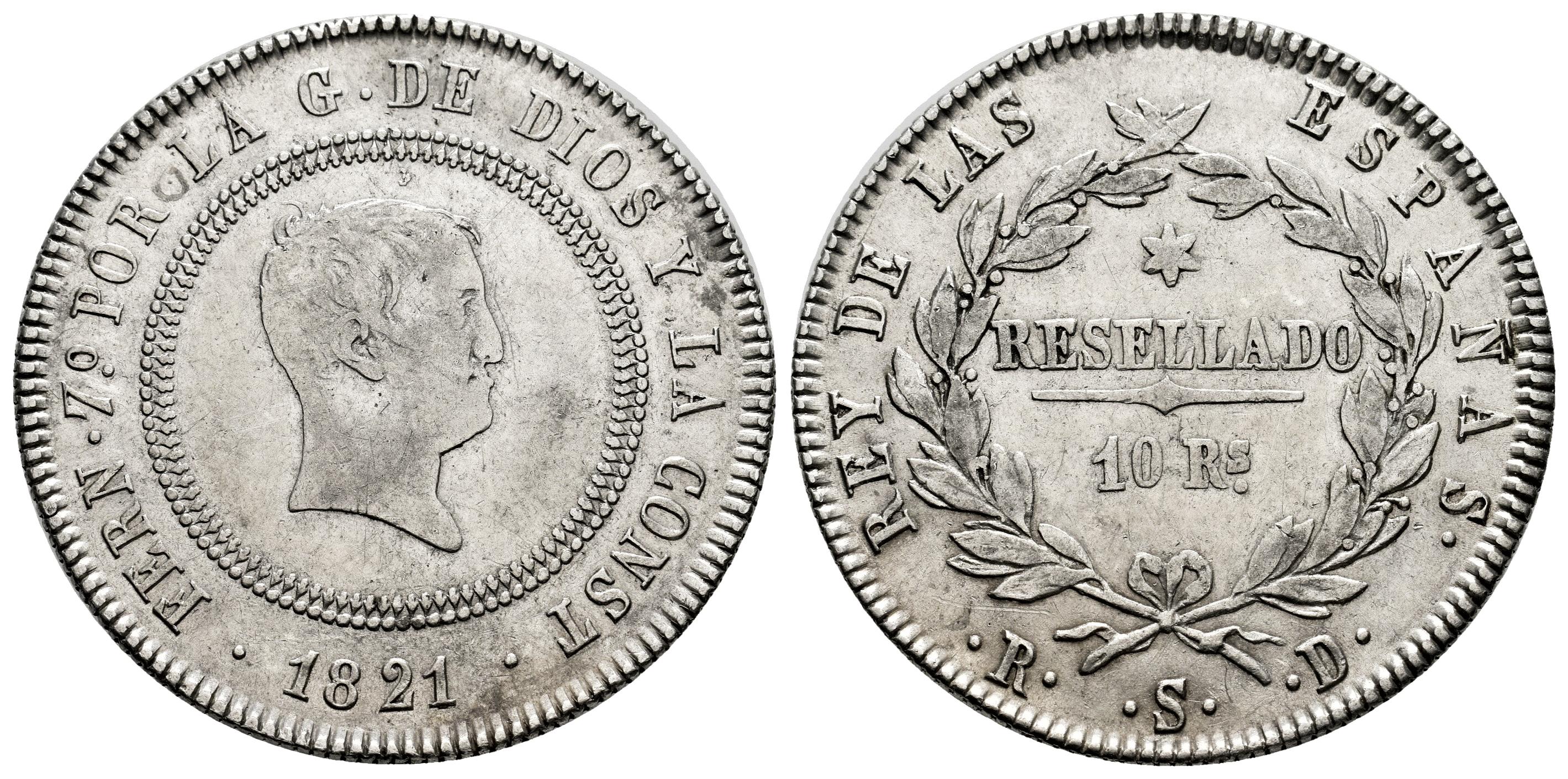 Fernando VII (1808-1833). 10 reales. 1821. Sevilla. RD. (Cal-1138). Ag. 13,30 g. MBC-/MBC. Est...150,00.