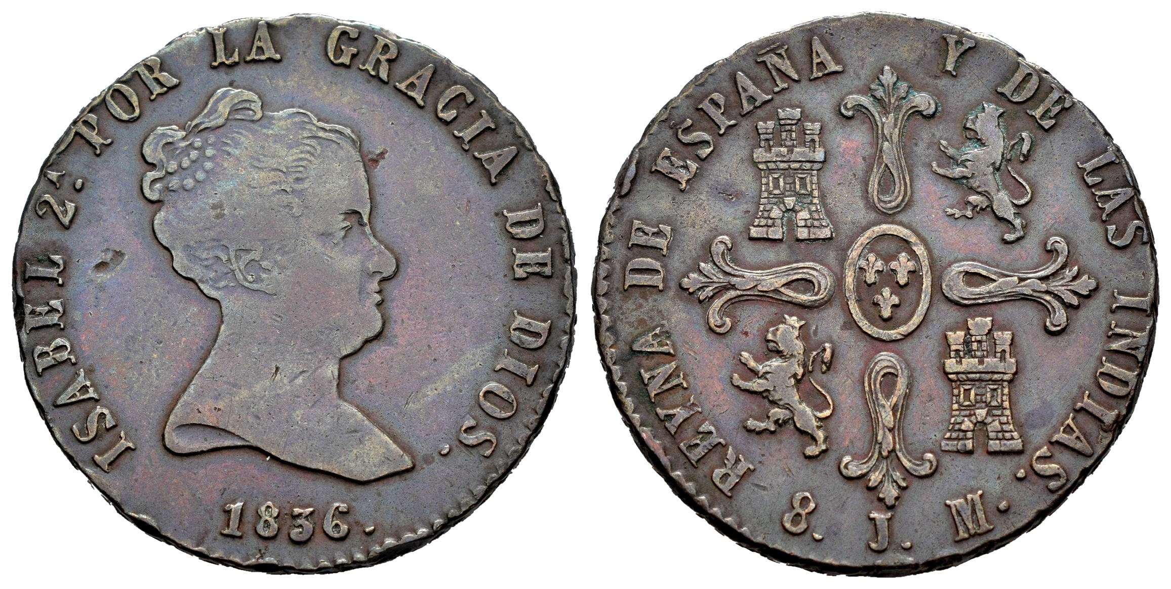 Isabel II (1833-1868). 8 maravedís. 1836. Jubia. (Cal-102). Ae. 9,71 g. Golpes en el canto. MBC-/MBC. Est...50,00.