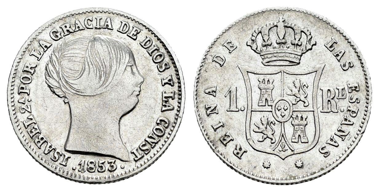 Isabel II (1833-1868). 1 real. 1853. Barcelona. (Cal-276). Ag. 1,28 g. Limpiada. MBC-. Est...25,00.
