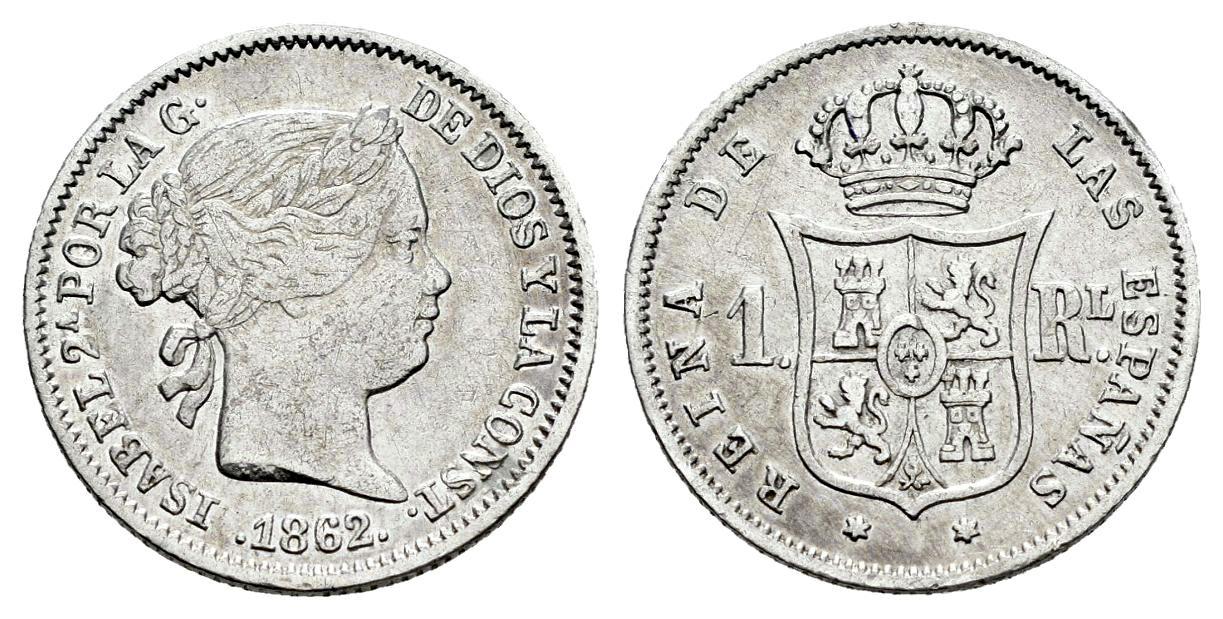 Isabel II (1833-1868). 1 real. 1862. Madrid. (Cal-311). Ag. 1,28 g.  Limpiada. MBC. Est...20,00.