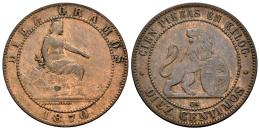 Centenario de la Peseta (1868-1931). Gobierno Provisional (1868-1871). 10 céntimos. 1870. Barcelona. OM. (Cal-8). Ae. 9,73 g. MBC-. Est...20,00.