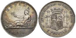 Centenario de la Peseta (1868-1931). Gobierno Provisional (1868-1871). 5 pesetas. 1870*18-70. Madrid. SNM. (Cal-39). Ag. 24,82 g. Golpecitos en el canto. MBC-. Est...25,00.