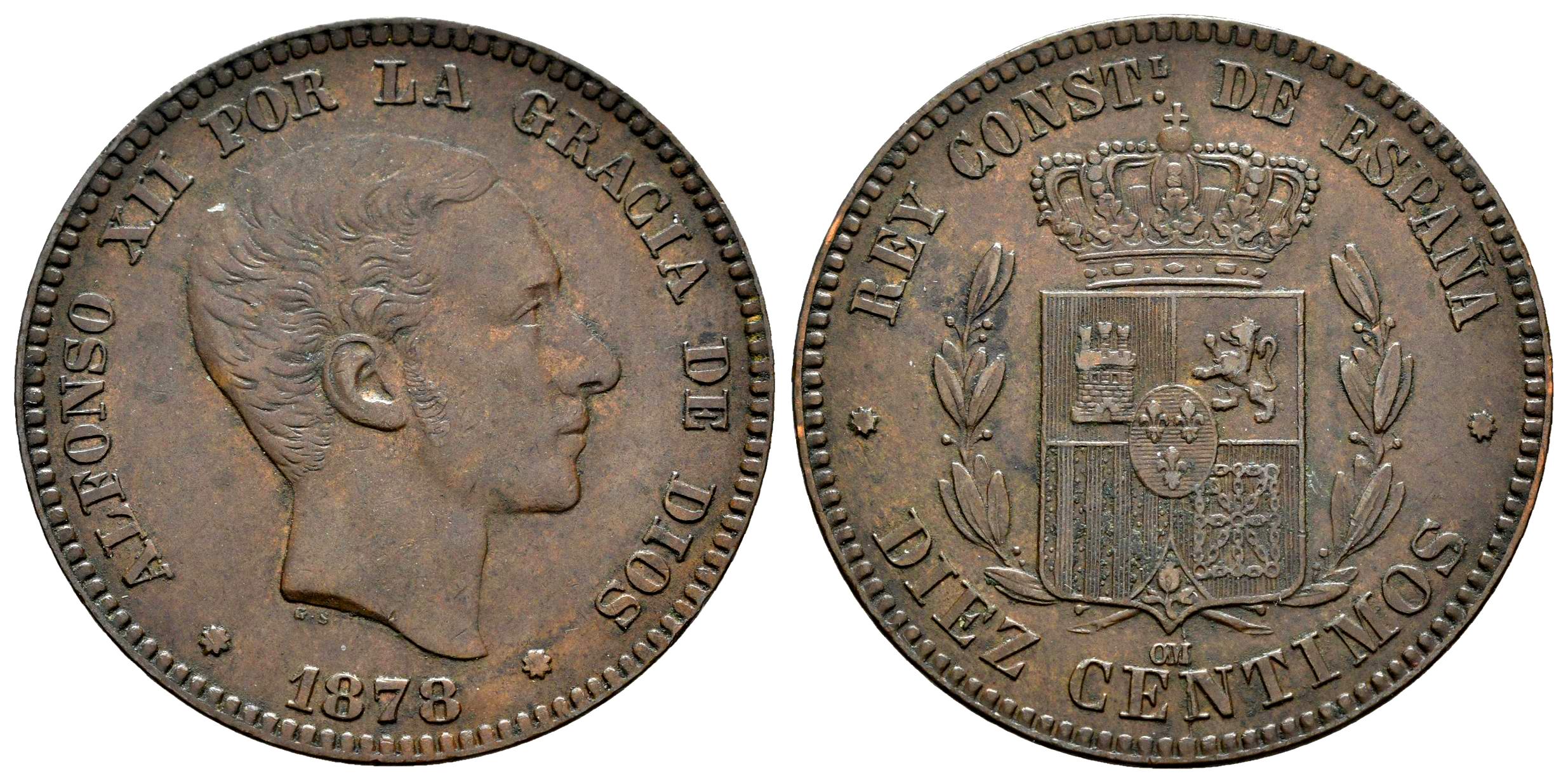 Centenario de la Peseta (1868-1931). Alfonso XII (1874-1885). 10 céntimos. 1878. Barcelona. OM. (Cal-9). Ae. 10,03 g. EBC-/MBC+. Est...50,00.