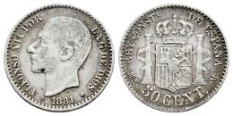 Centenario de la Peseta (1868-1931). Alfonso XII (1874-1885). 50 céntimos. 1881*8-1. Madrid. MSM. (Cal-12). Ag. 2,47 g. MBC-. Est...15,00.