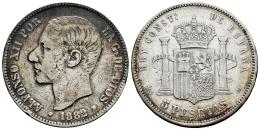 Centenario de la Peseta (1868-1931). Alfonso XII (1874-1885). 5 pesetas. 1882/1*18-81. Madrid. MSM. (Cal-45). Ag. 24,63 g. Escasa. BC+. Est...35,00.