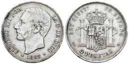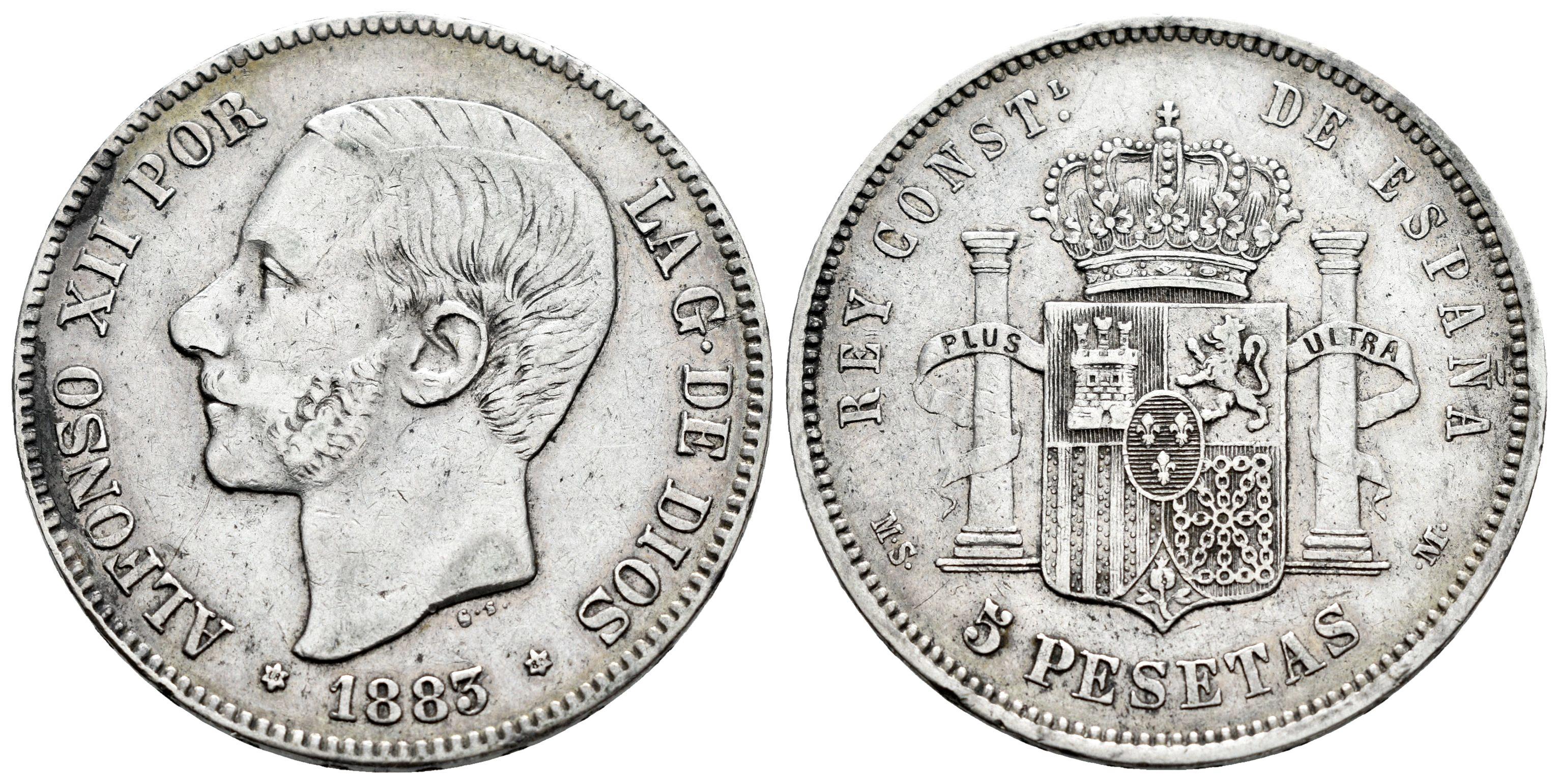 Centenario de la Peseta (1868-1931). Alfonso XII (1874-1885). 5 pesetas. 1883*18-83. Madrid. MSM. (Cal-55). Ag. 25,05 g. MBC-/BC. Est...30,00.