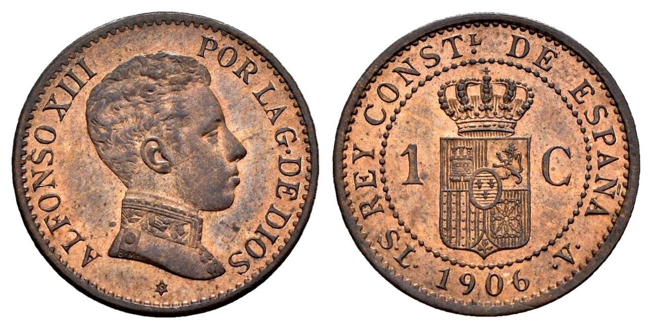 Centenario de la Peseta (1868-1931). Alfonso XIII (1886-1931). 1 céntimo. 1906*6. Madrid. SLV. (Cal-2). Ae. 1,07 g. EBC+. Est...12,00.