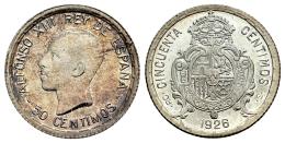 Centenario de la Peseta (1868-1931). Alfonso XIII (1886-1931). 50 céntimos. 1926. Madrid. PCV. (Cal-50). Ag. 2,50 g. SC-. Est...15,00.