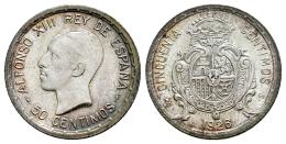 Centenario de la Peseta (1868-1931). Alfonso XIII (1886-1931). 50 céntimos. 1926. Madrid. PCS. (Cal-50). Ag. 2,54 g. Brillo original. SC-. Est...25,00.