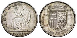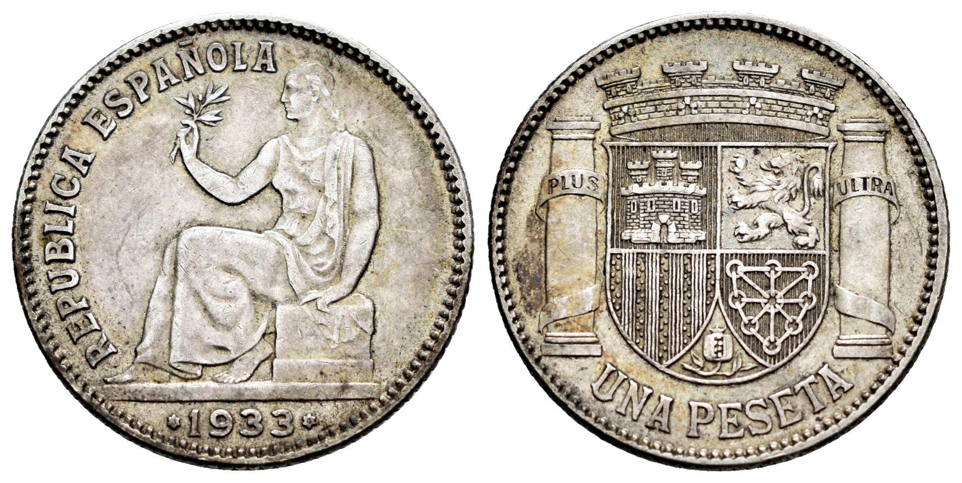 II República (1931-1939). 1 peseta. 1933*3-4. Madrid. (Cal-34). Ag. 4,97 g. EBC-/EBC. Est...20,00.