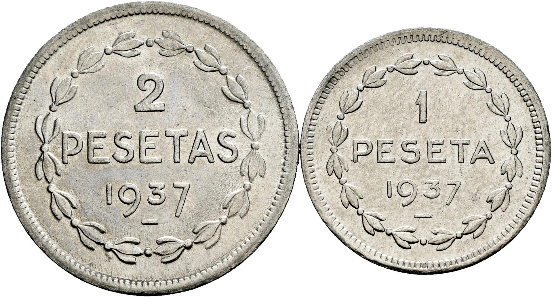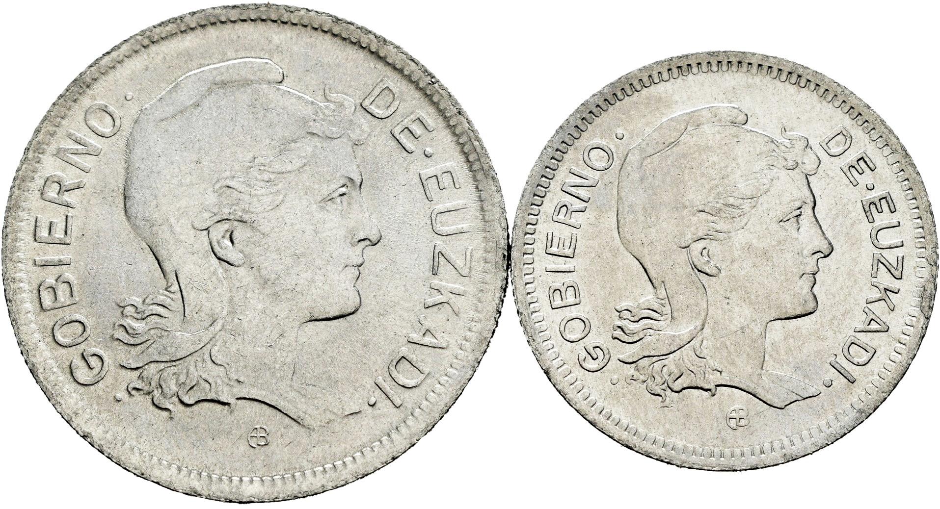 Guerra Civil (1936-1939). Serie completa. 1937. Euzkadi. (Cal-14-15). Ni. 1 y 2 pesetas. SC-/SC. Est...25,00.