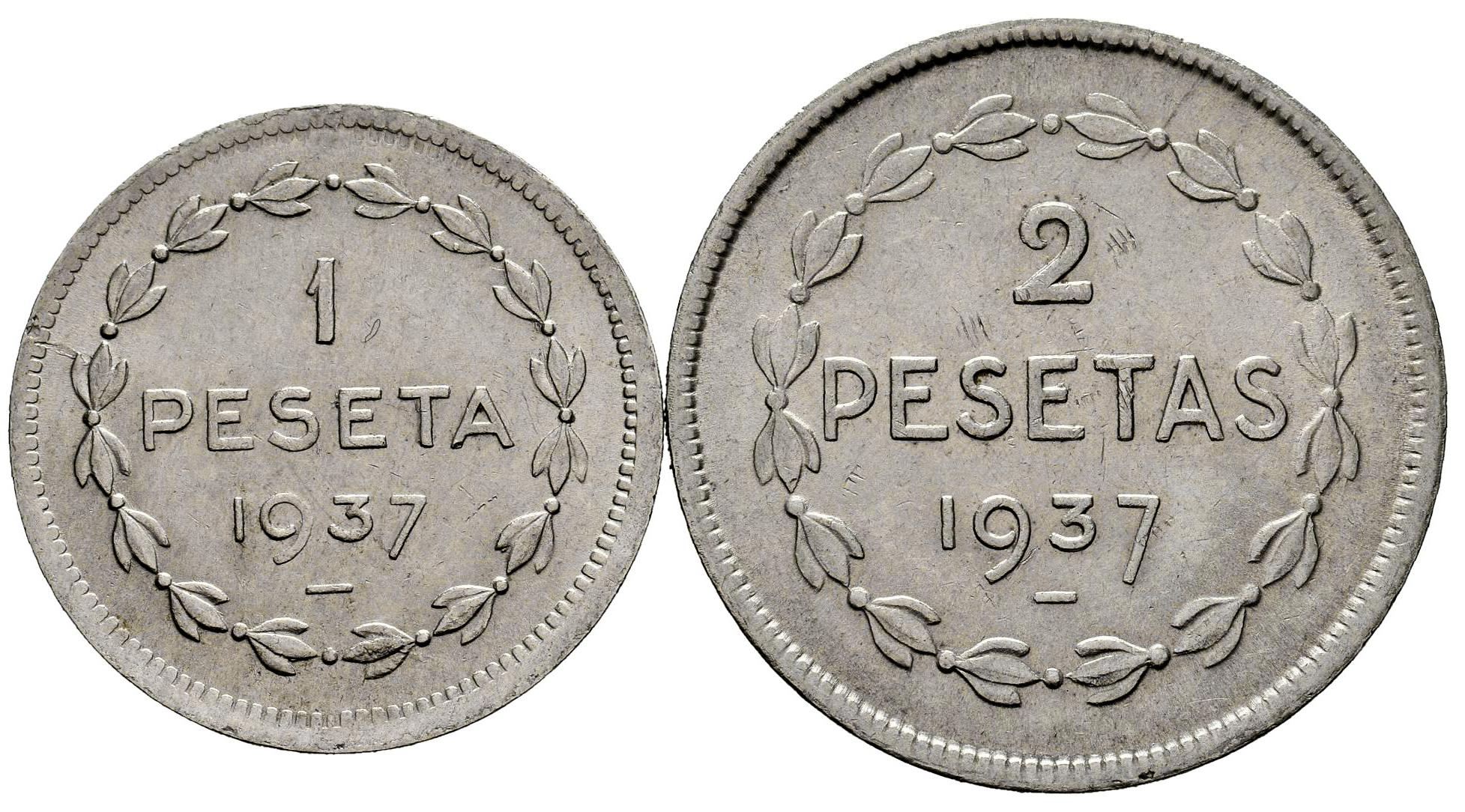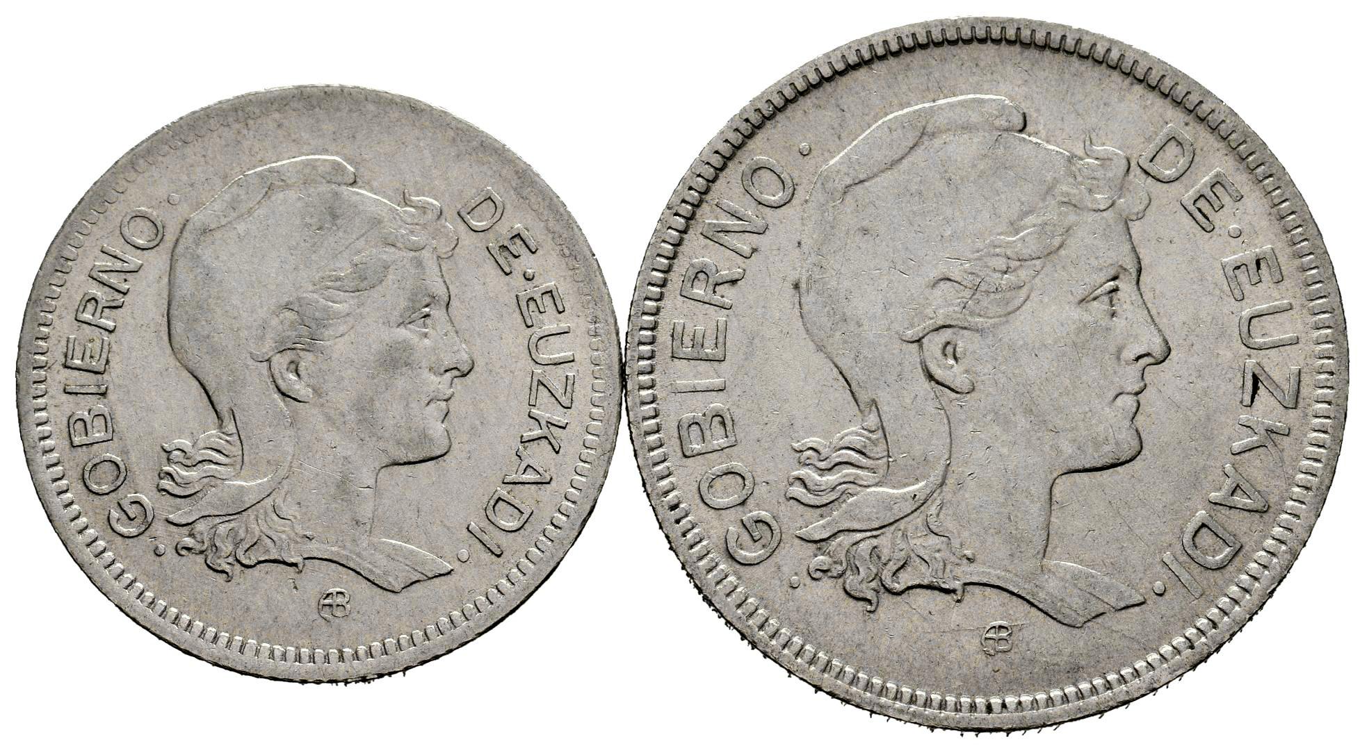 Guerra Civil (1936-1939). Serie completa. 1937. Euzkadi. (Cal-14 y 15). Ni. 2 pesetas y 1 peseta. SC. Est...20,00.