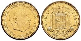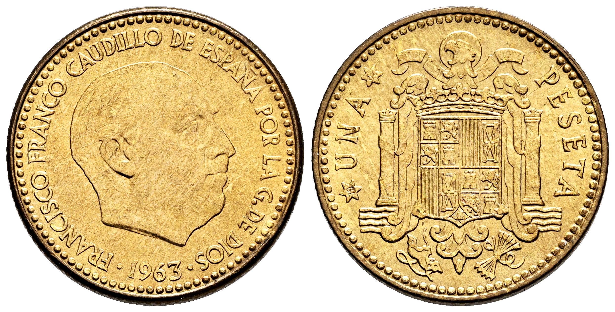 Estado Español (1936-1975). 1 peseta. 1963*19-64. Madrid. (Cal-64). Al-Cu. 3,54 g. Pleno brillo original. SC. Est...15,00.