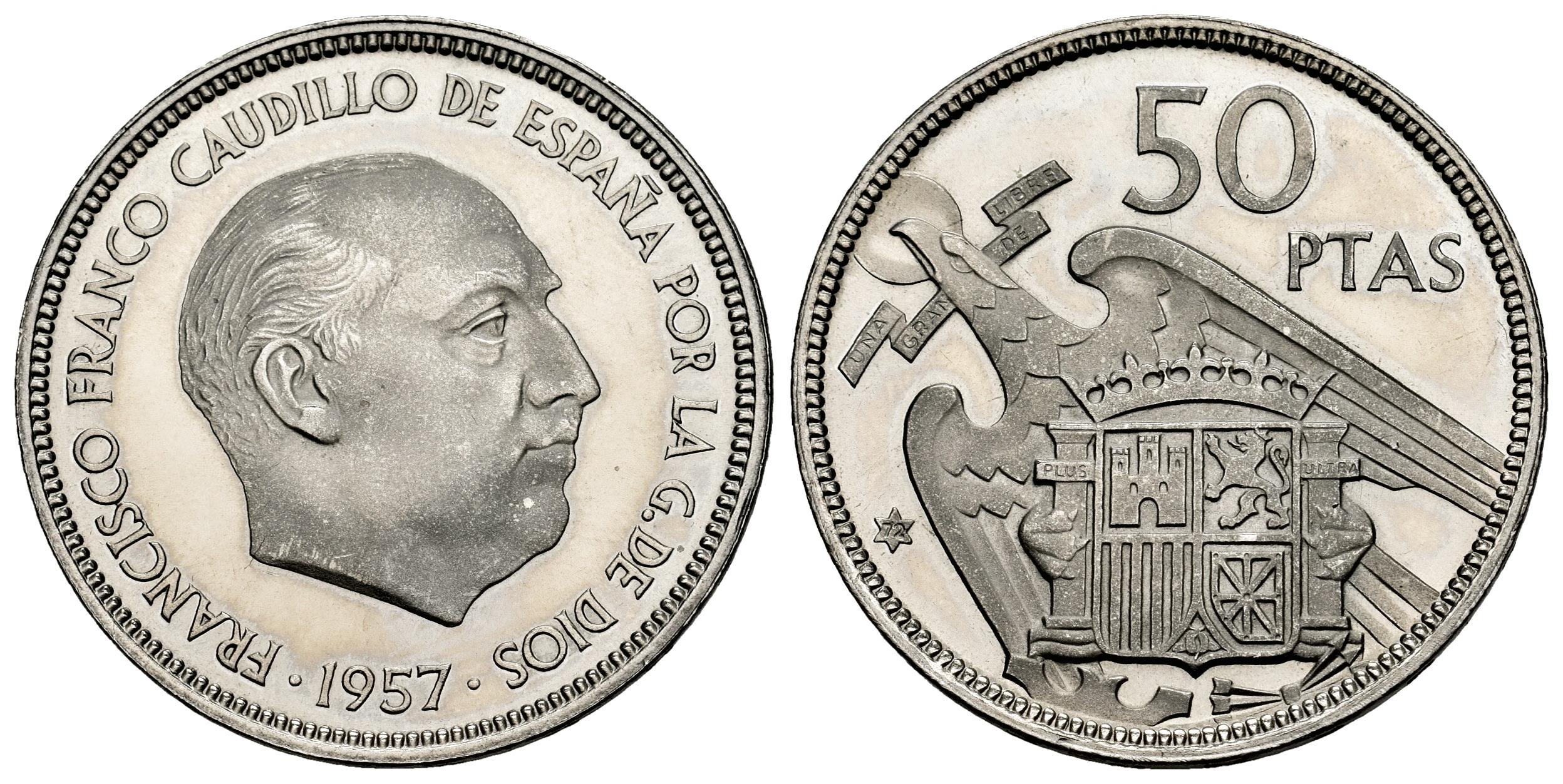 Estado Español (1936-1975). 50 pesetas. 1957*72. Madrid. (Cal-141). Ni. 12,54 g. Proviene de cartera FNMT. Pleno brillo original. SC. Est...40,00.