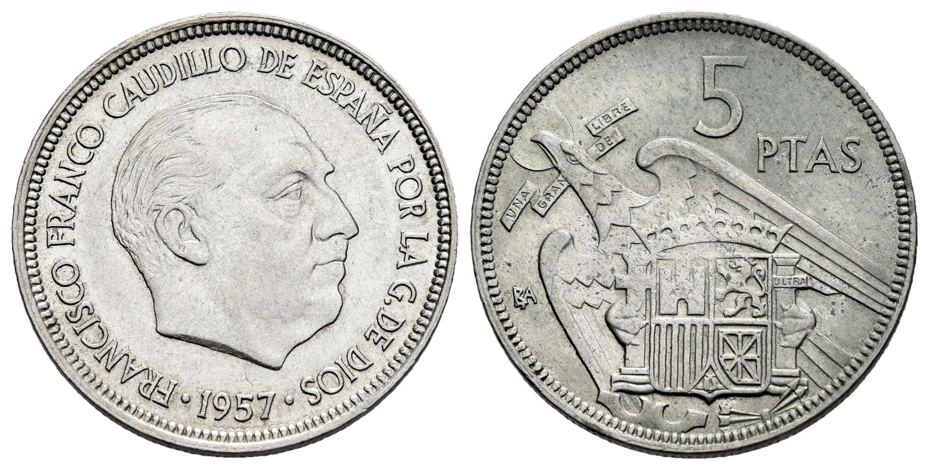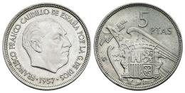 Estado Español (1936-1975). 5 pesetas. 1957. Barcelona. BA. (Cal-154). Cu-Ni. 5,76 g. I Exposición Iberoamericana de Numismática. EBC-. Est...35,00.