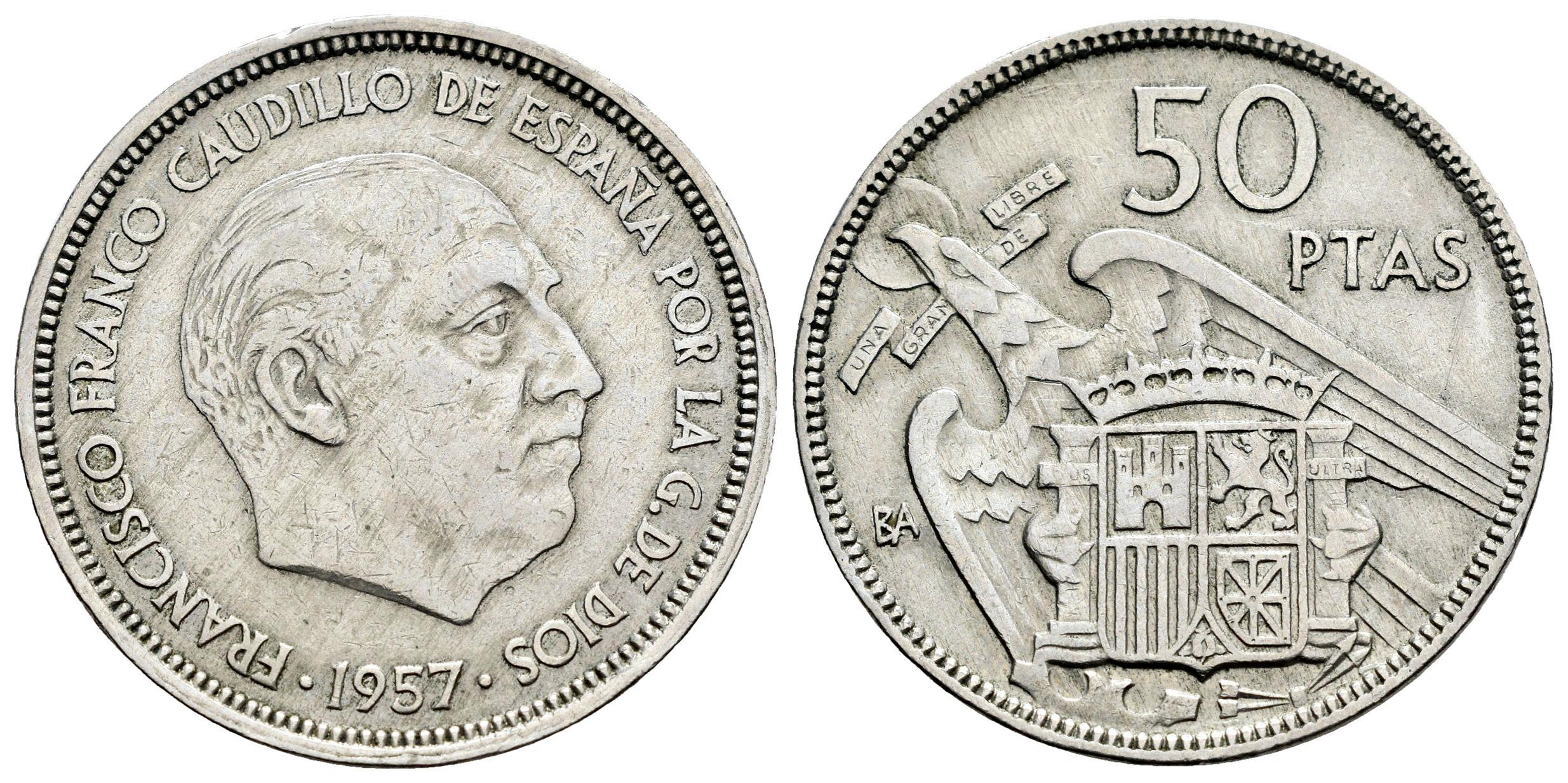 Estado Español (1936-1975). 50 pesetas. 1957. Barcelona. BA. (Cal-156). Cu-Ni. 12,42 g. MBC. Est...35,00.