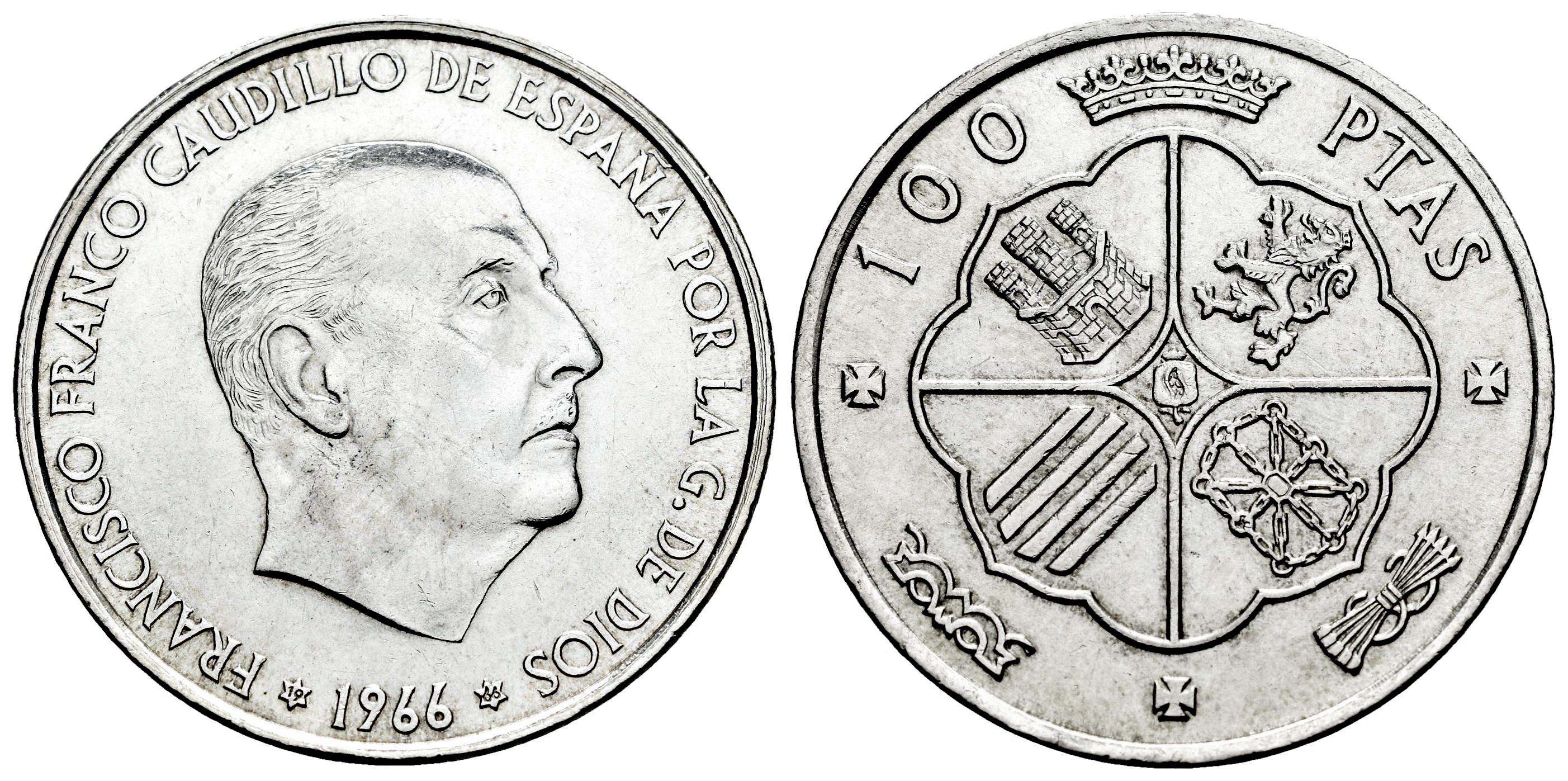 Estado Español (1936-1975). 100 pesetas. 1966*19-66. Madrid. (Cal-145). Ag. 18,95 g. EBC. Est...12,00.