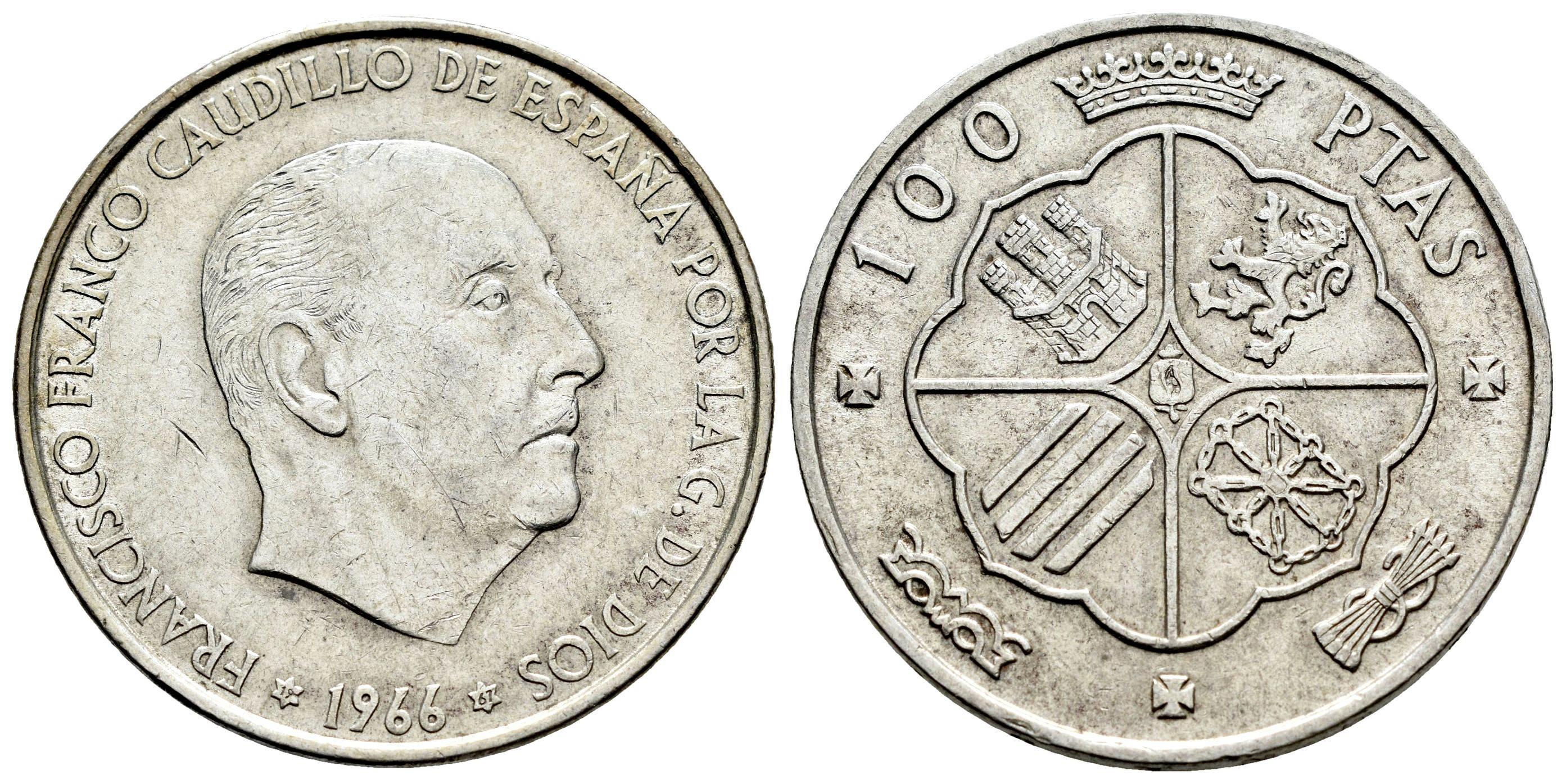Estado Español (1936-1975). 100 pesetas. 1966*19-67. Madrid. (Cal-146). Ag. 18,86 g. Golpecitos. MBC+. Est...10,00.