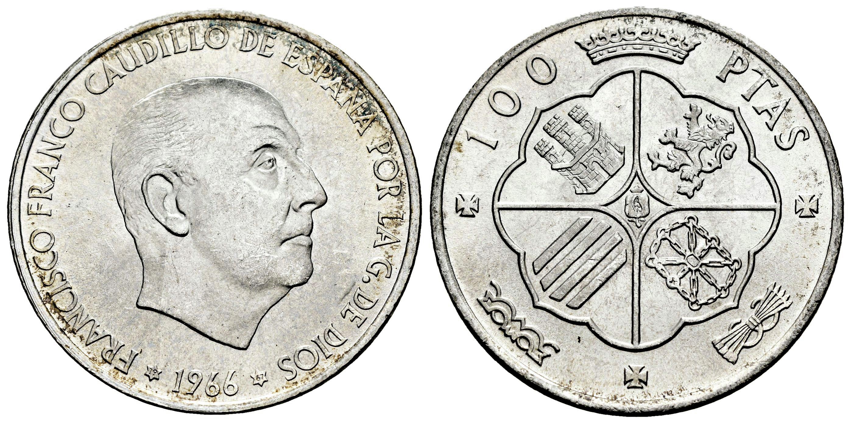 Estado Español (1936-1975). 100 pesetas. 1966*19-67. Madrid. (Cal-146). Ag. 19,14 g. SC-. Est...20,00.