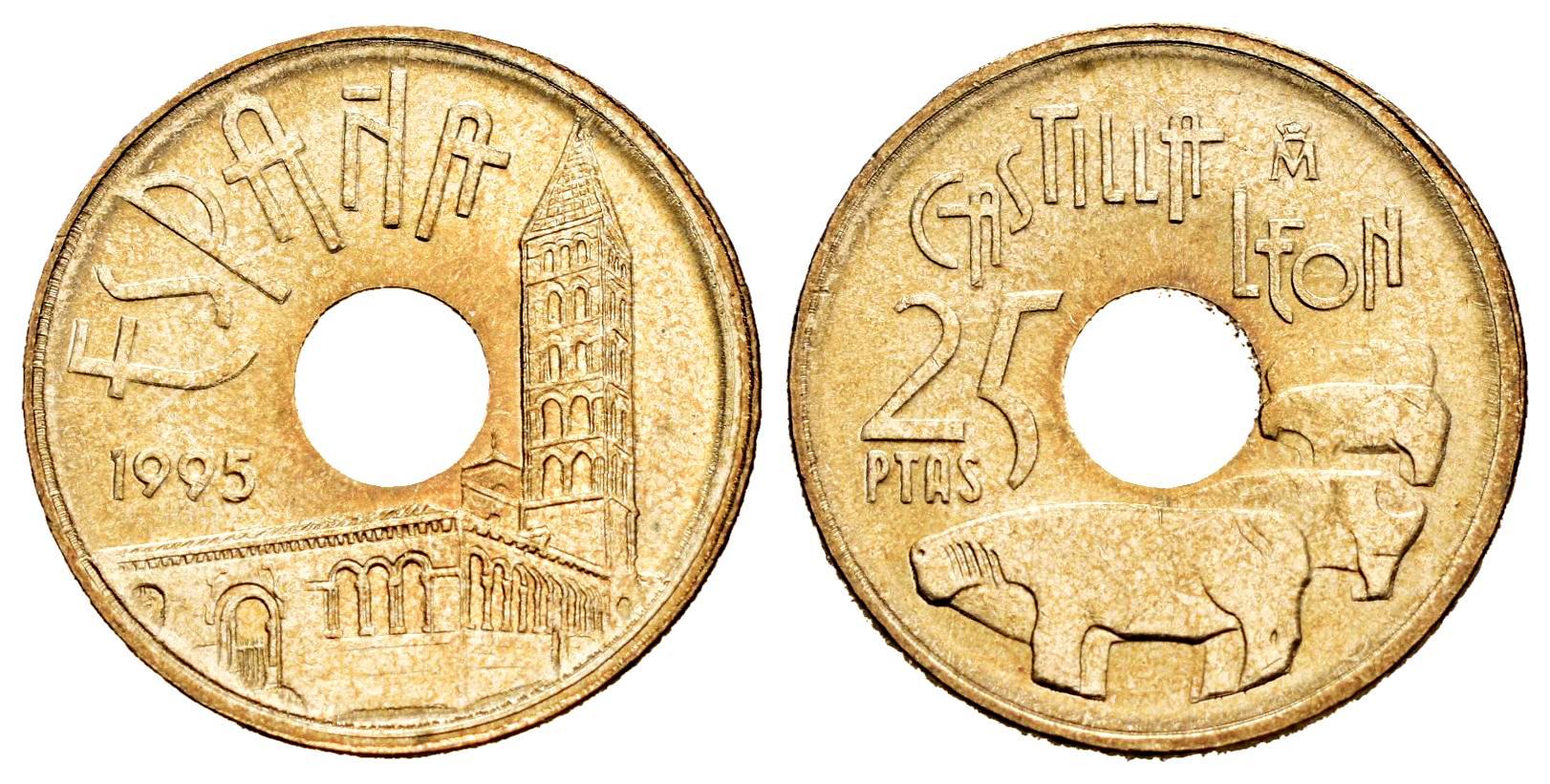 Juan Carlos I (1975-2014). 25 pesetas. 1995. Madrid. (Cal-93). Ae. 4,25 g. Sin la "Y" de Castilla y León. SC. Est...60,00.