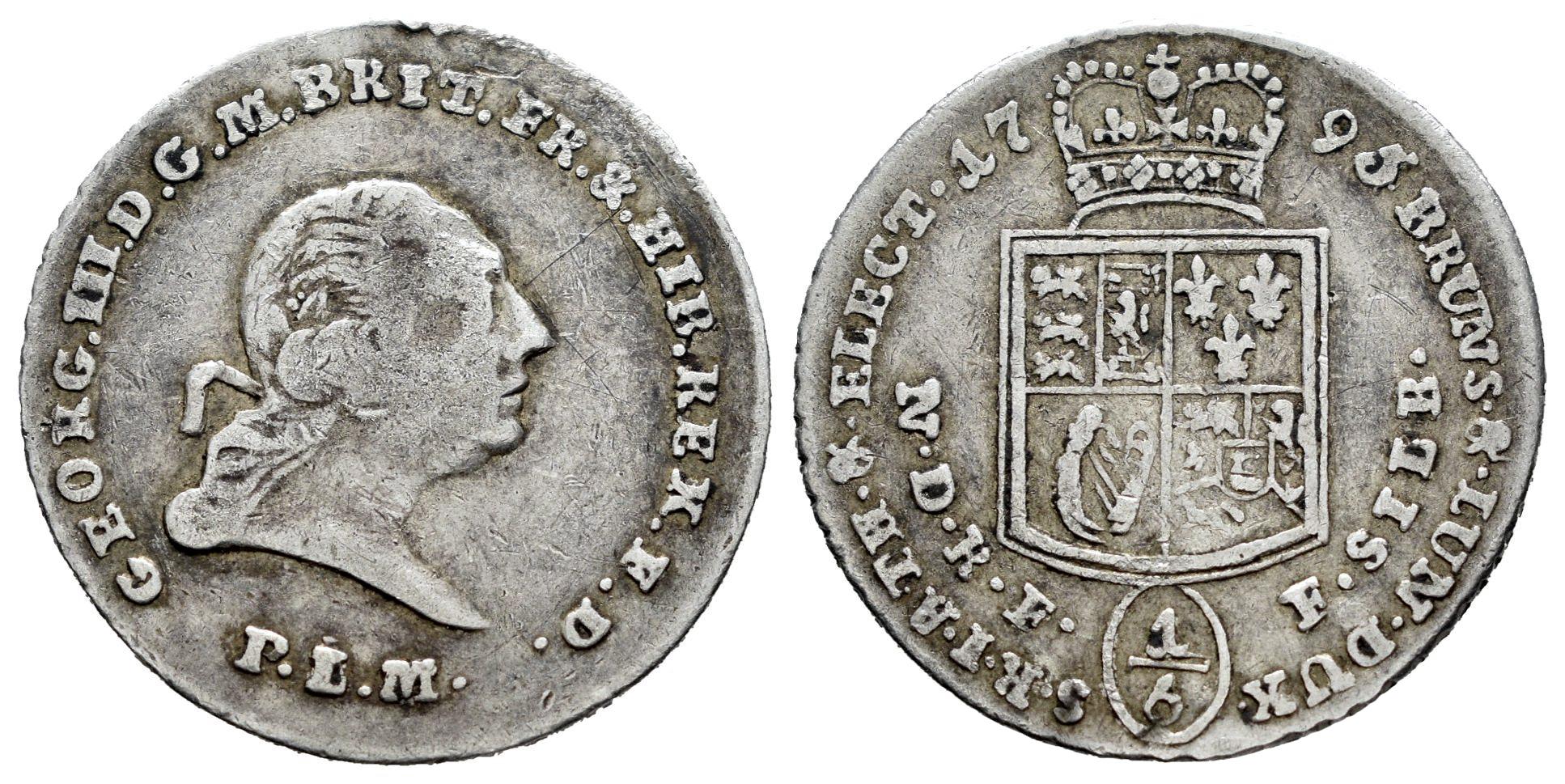 Alemania. Brunswick-Luneburg-Calenberg-Hannover. Georg III. 1/6 thaler. 1795. Clausthal. PLM. (Km-400). Ag. 3,23 g. MBC-/MBC. Est...35,00.