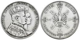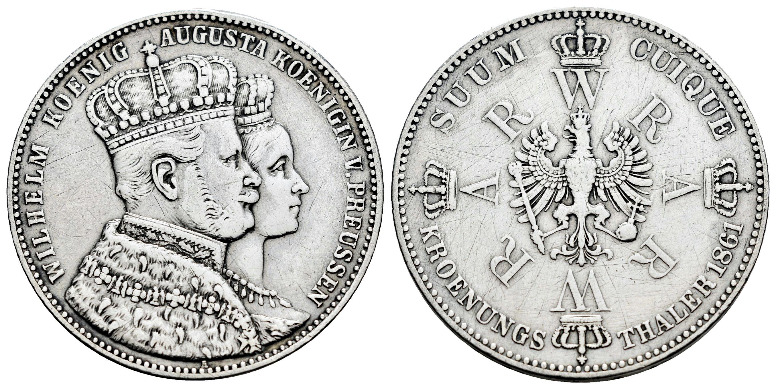 Alemania. Prussia. Wilhelm I. Taler. 1861. Berlín. A. (Km-488). (Dav-778). Ag. 18,30 g. Soldadura reparada en el canto a las 12 h. Limpiada. MBC-. Est...25,00.