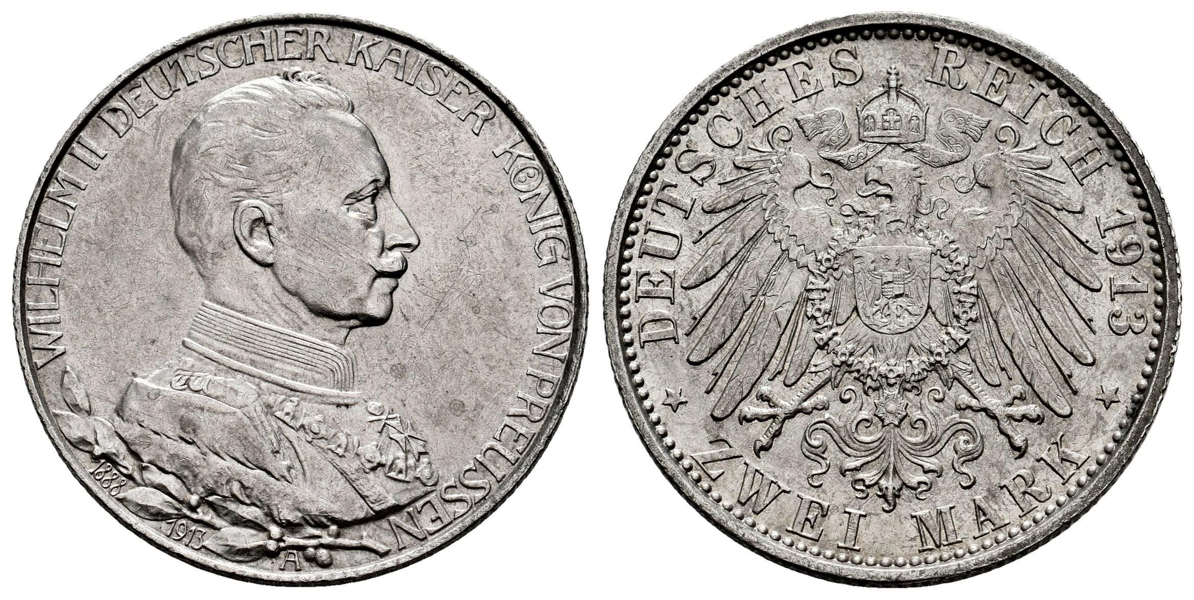Alemania. Prussia. Wilhelm II. 2 mark. 1913. Berlín. A. (Km-533). Ag. 11,08 g. Restos de brillo original. EBC/EBC+. Est...35,00.